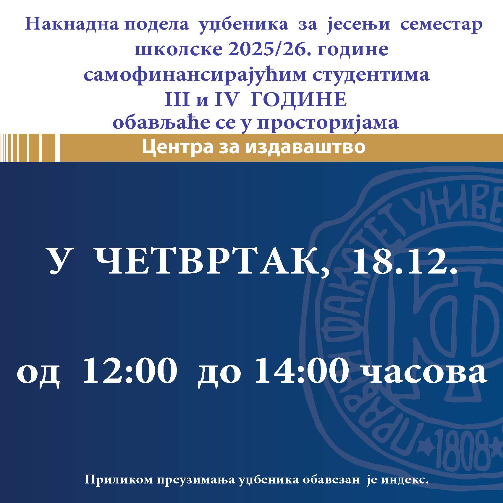 Naknadna podela udžbenika samofinansirajućim studentima III i IV godine