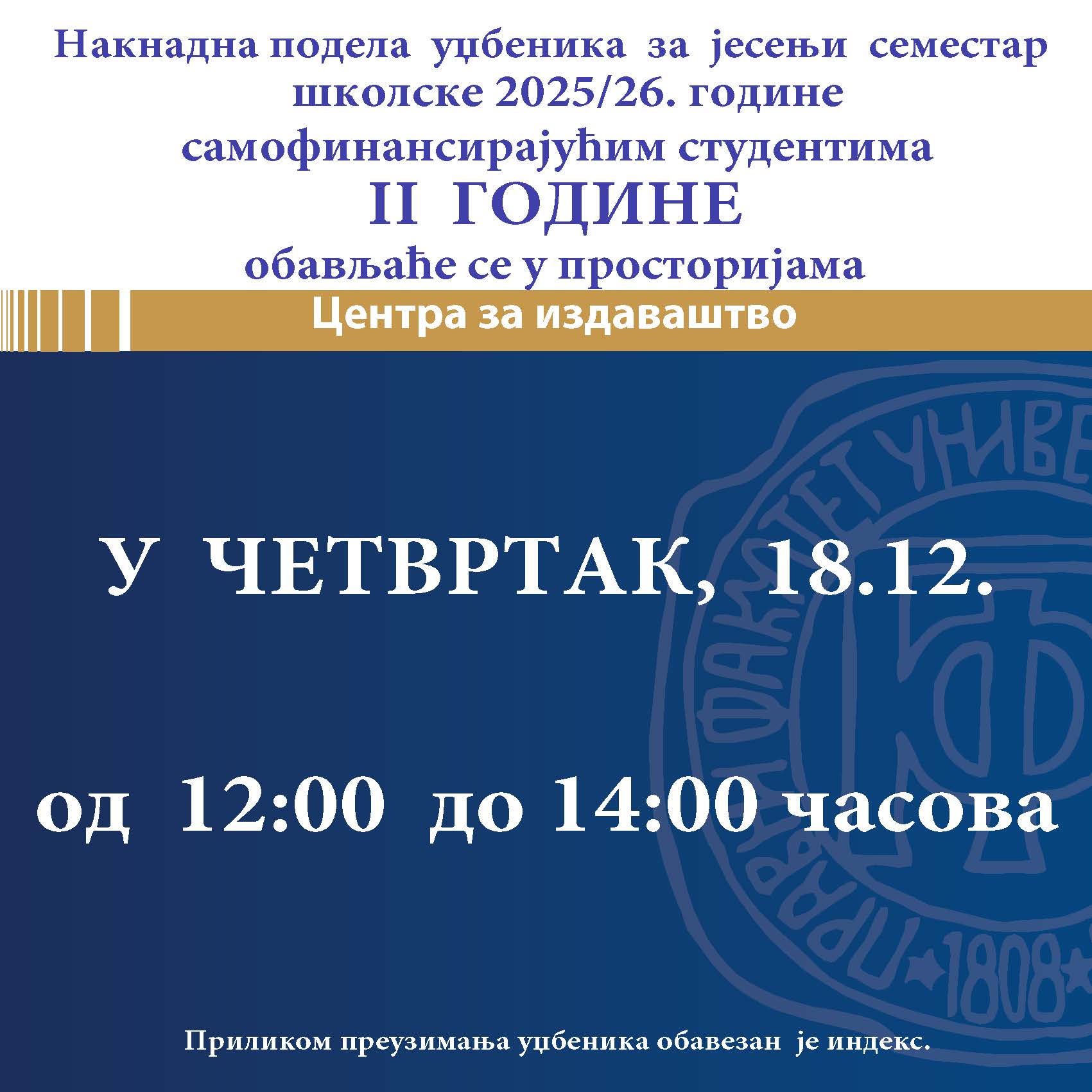 Naknadna podela udžbenika samofinansirajućim studentima II godine